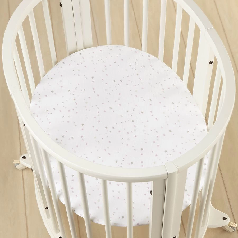 Our 100% cotton muslin fitted sheet designed for the Stokke® Sleepi™ Mini Crib is the most breathable fabric to lay your little one on. Modern colors compliment your nursery style while whimsical prints delight your baby. Made from 100% cotton muslin, the fitted oval sheet is super soft from the start and stays that way wash after wash.