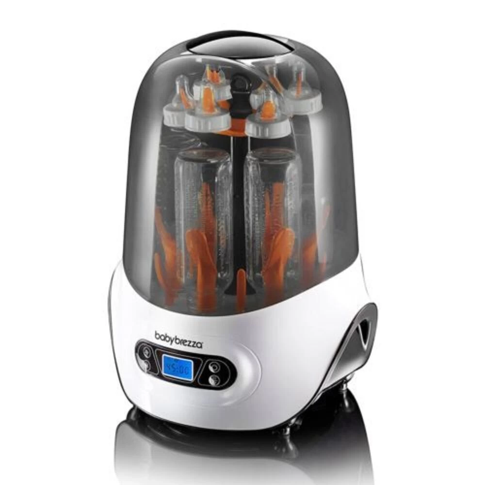 This 4-in-1 machine uses natural steam to kill 99.9% of the germs in your baby’s bottles, in just 8 minutes. The bottles then remain sterile for up to 24 hours, or until the lid is open. The unique drying feature then completely dries your bottles, with a choice of 30, 45 or 60 minute drying cycle. The easy-to-use control panel allows you to sterilize only, sterilize and dry, or dry only. The One Step Sterilizer Dryer holds up to 6 bottles plus accessories, and works with all bottle sizes. The bottle rack can be removed and used as a storage rack.