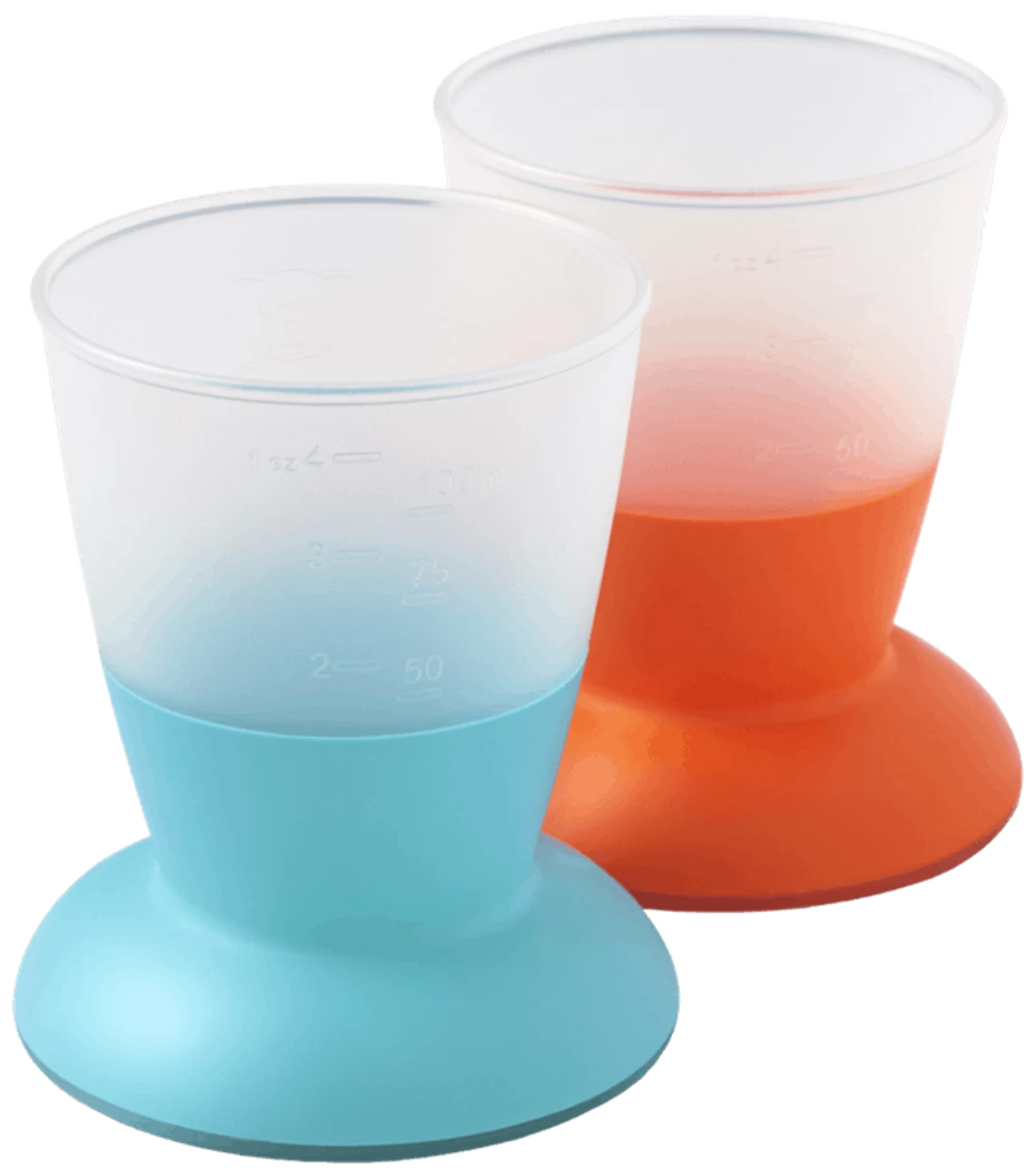 The BABYBJÖRN Baby Cup is specially designed for the way small kids hold cups and drink. Grip-friendly materials and distinct shapes mean that the cup is easy to hold. The rounded rim is nice and soft against their lips. The low center of gravity and the wide, heavy base with rubber underneath keep the glass firmly on the table. The anti-slide edging means that the glass will not tip over easily.