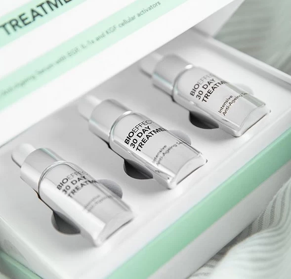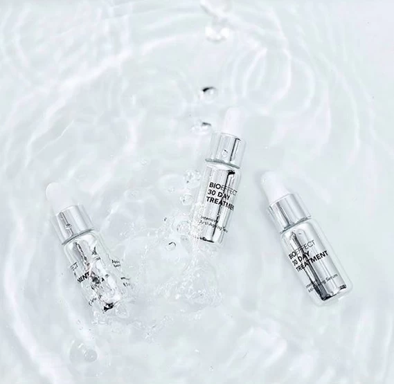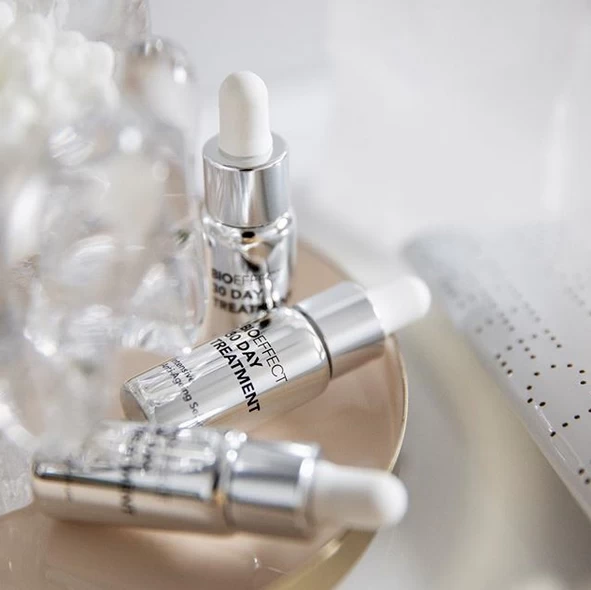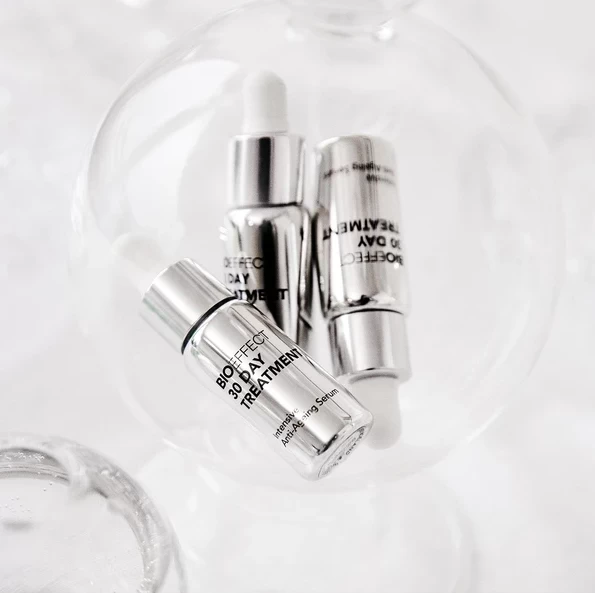 Apply 3-4 drops to clean skin in the morning and evening. In the morning, wait 3-5 minutes to allow the serum to absorb before applying sunscreen or makeup. The treatment is specifically formulated as a highly concentrated boost to regular anti-aging skincare to be used 1-4 times a year, depending on the skin’s condition.