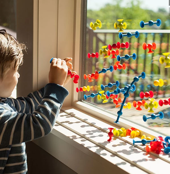 - Using “suction construction” and a little imagination, these fun little suckers will provide hours of creative play for boys & girls alike.