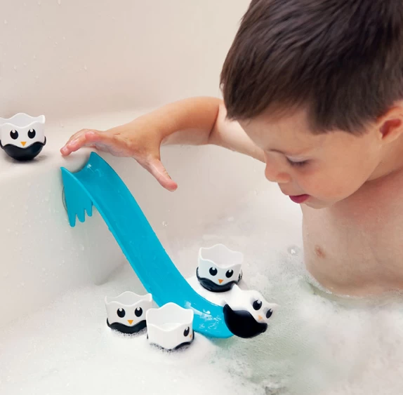 Fill up the tub, set the iceberg adrift, and send the penguins racing down the slide! Whoosh!