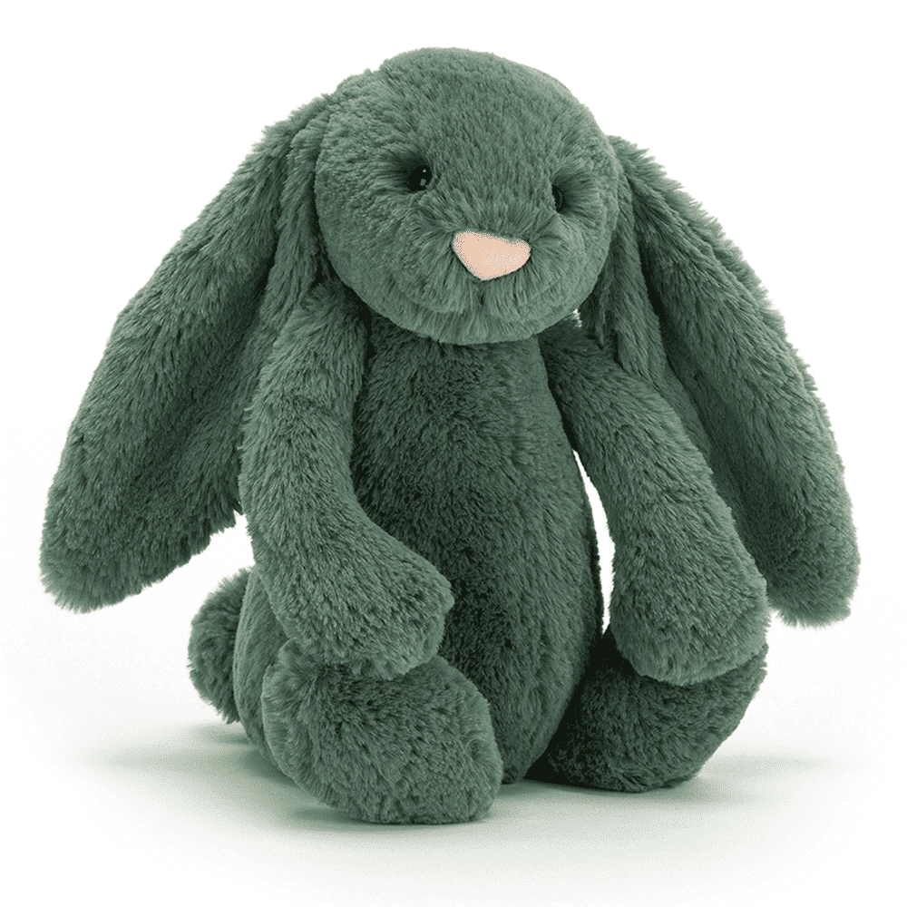 Bashful Forest Bunny loves nature walks, and hops through the woodland looking for bugs! This sage little scamp has bluey-green fur, and likes to hide in the softest moss. Take this bunny for rambles, scrambles and picnics and see what adventures you find!
