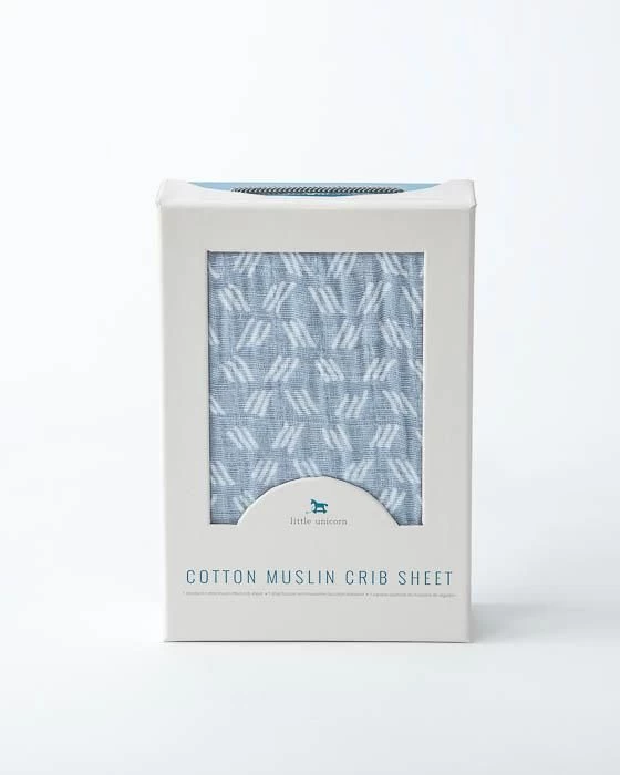 Little Unicorn Cotton Muslin Crib Sheet comes in standard size and is made from 100% cotton muslin.