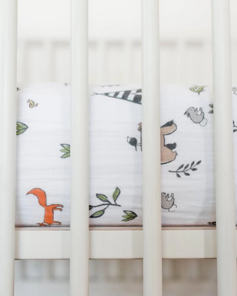Little Unicorn Cotton Muslin Crib Sheet comes in standard size and is made from 100% cotton muslin.