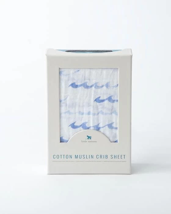 Little Unicorn Cotton Muslin Crib Sheet comes in standard size and is made from 100% cotton muslin.