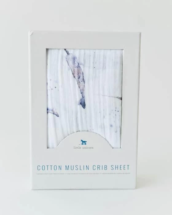 Little Unicorn Cotton Muslin Crib Sheet comes in standard size and is made from 100% cotton muslin.