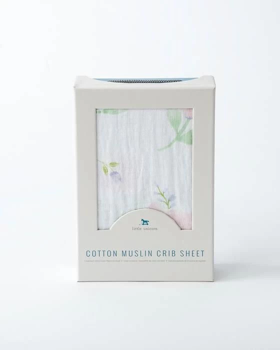 Little Unicorn Cotton Muslin Crib Sheet comes in standard size and is made from 100% cotton muslin.