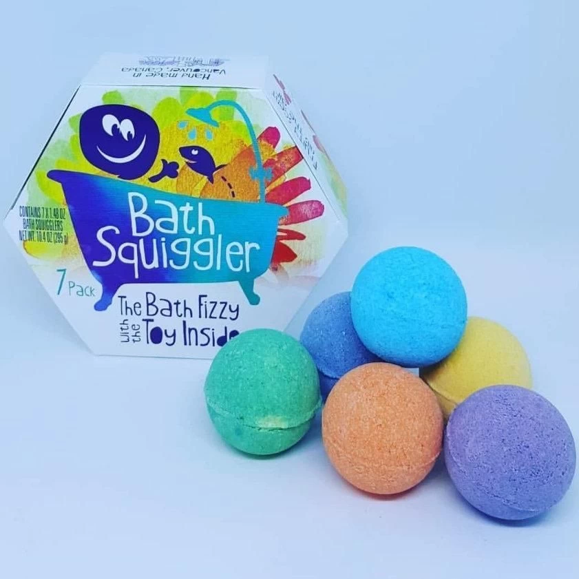 Fill the bath and simply drop in a Bath Squiggler™ and watch as it colours the water while scenting the air with a fruity fragrance. As the Squiggler dissolves, out pops a cute sponge character…. and they won’t stain your bath or your children.