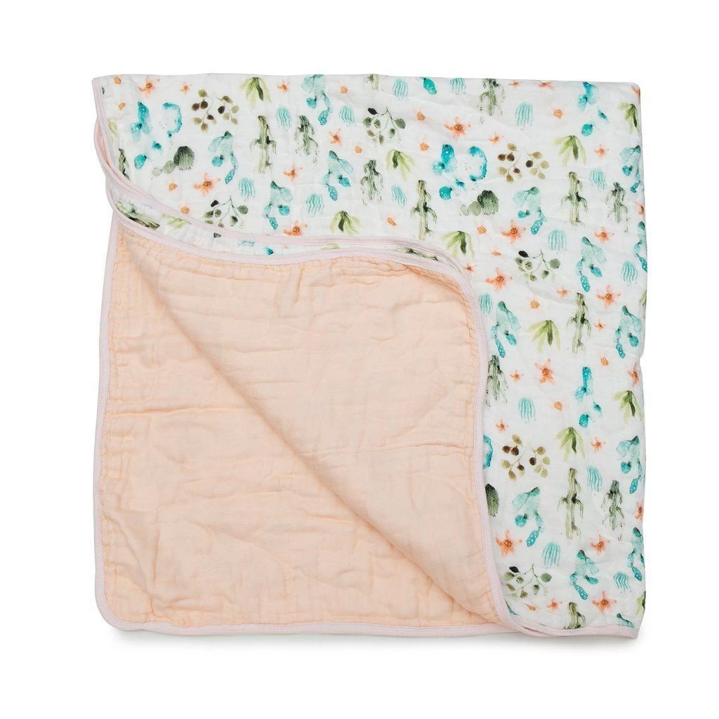 Made with ultra-soft fabric, our muslin quilt offers four layers of coziness to lull baby into relaxation mode. Plus it’s generously sized to grow with baby through the toddler years. The blanket they’ll always reach for!