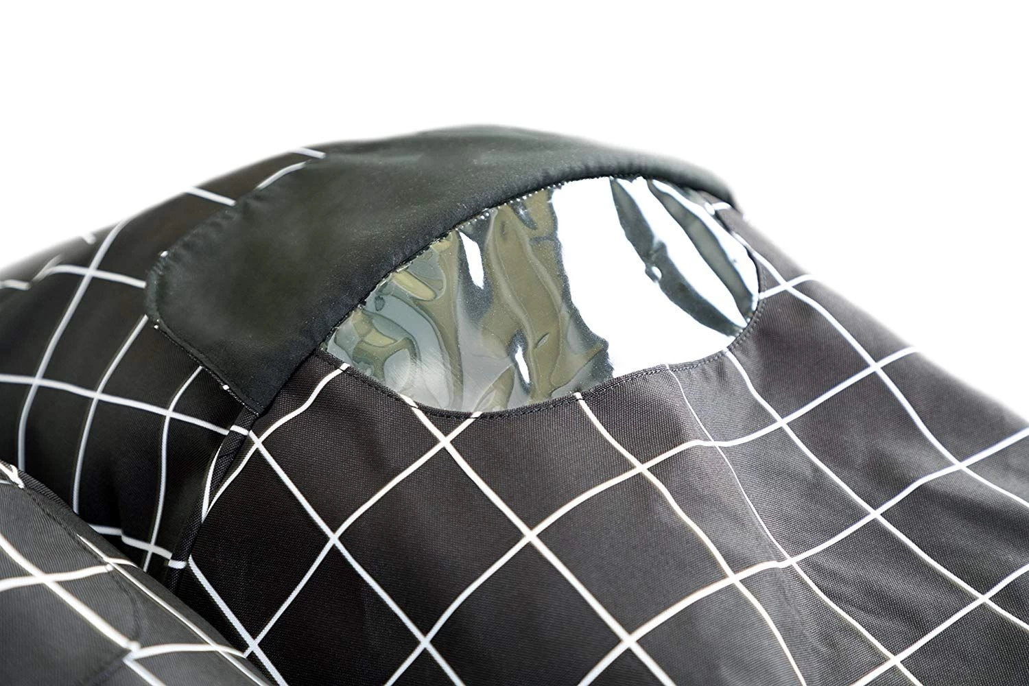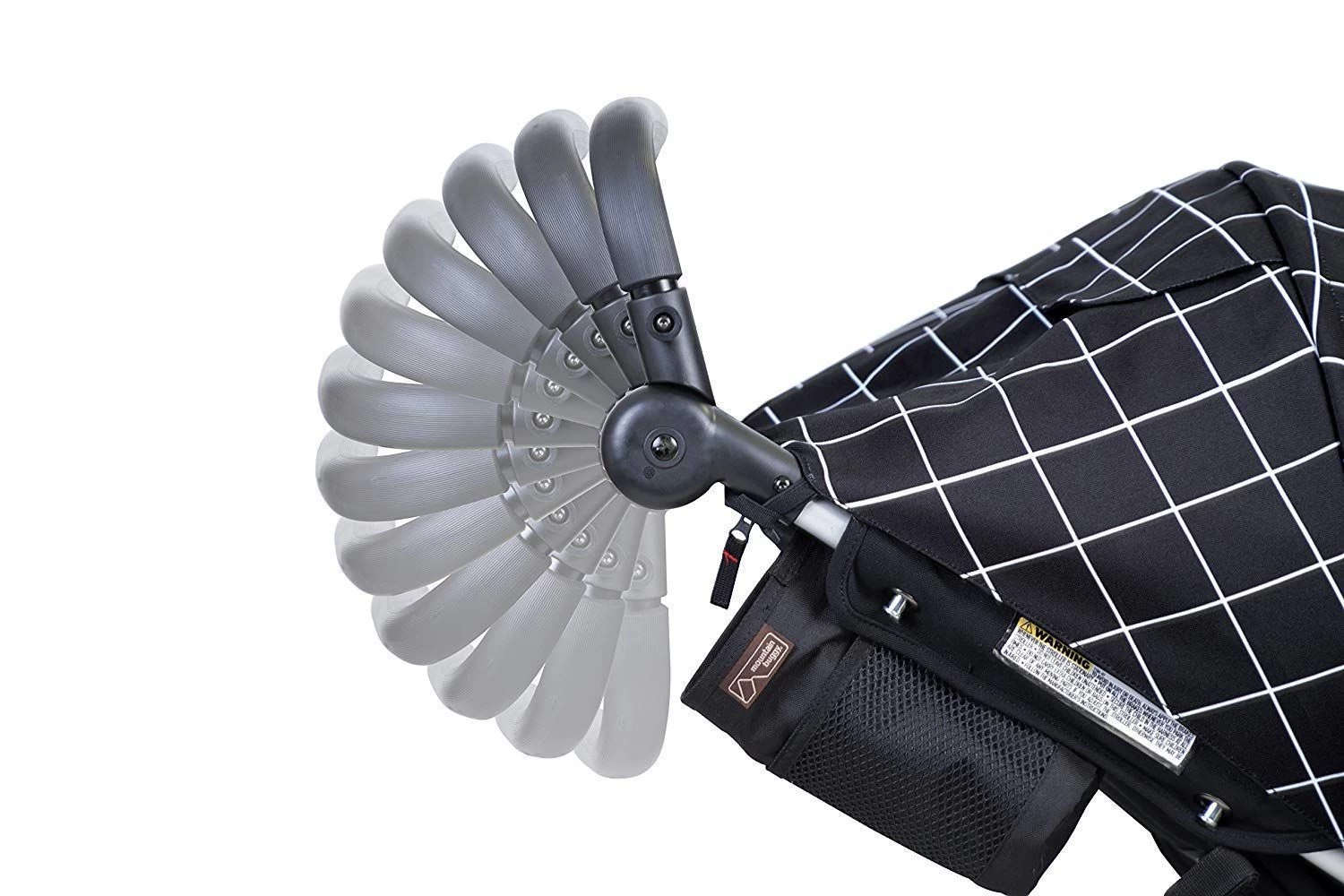 - Individual mesh SPF 50+ sunhoods with flick out mesh visors and silent peek-a-boo windows