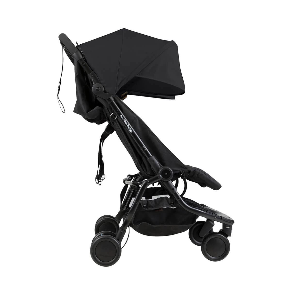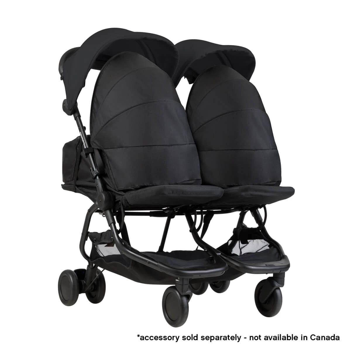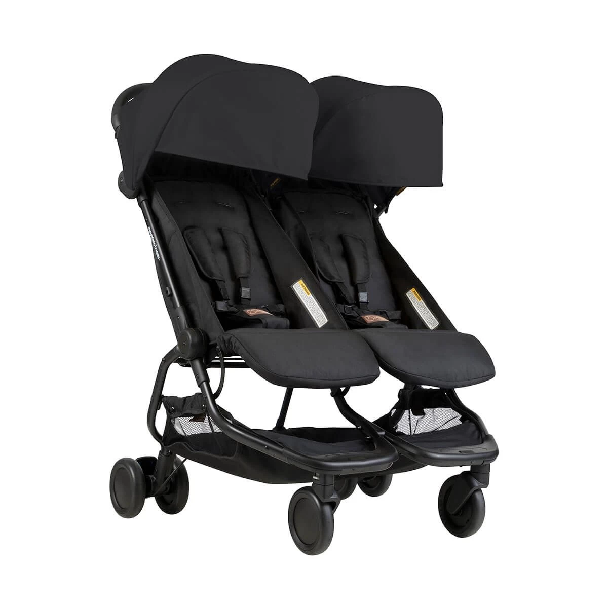 Featuring an ultra compact fold, extra large roomy seats, adjustable leg rests and full coverage sun canopies, nano duo™ offers a true Mountain Buggy experience for parents on the go, living life without limit with two.