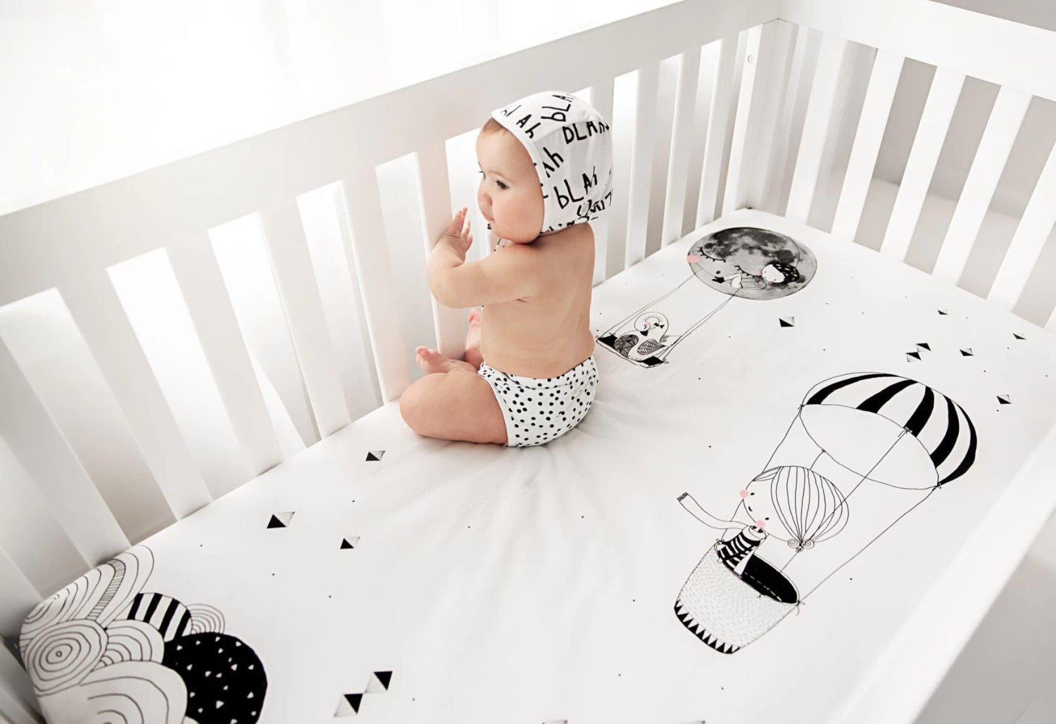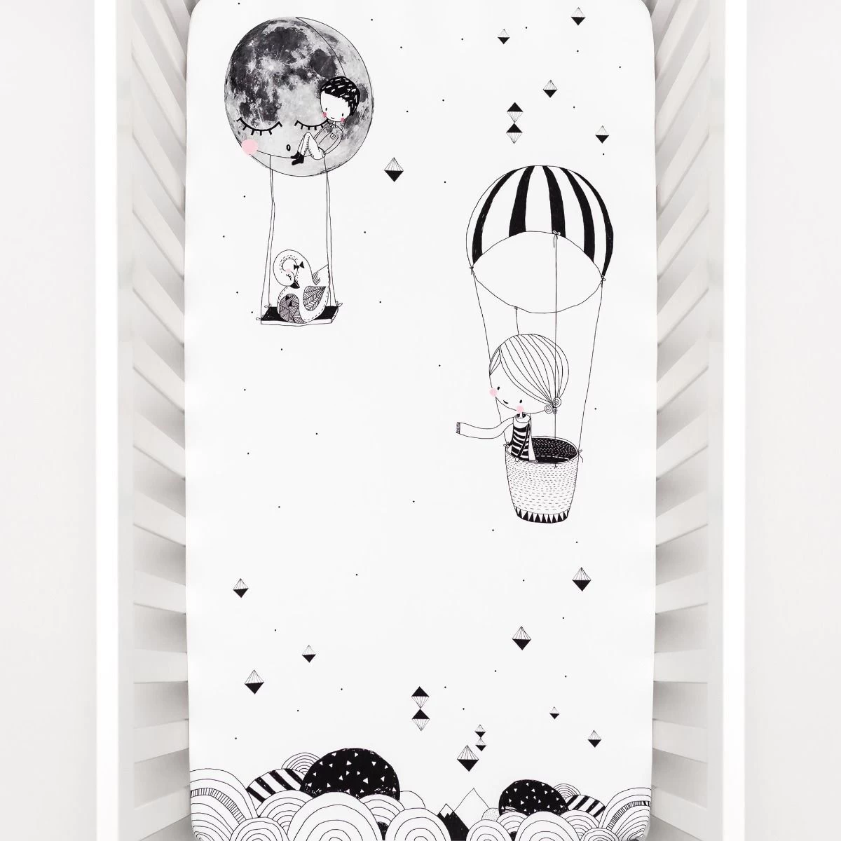 Illustrated with love by Swantje Hinrichsen, this whimsical crib sheet is the perfect match for a modern nursery.