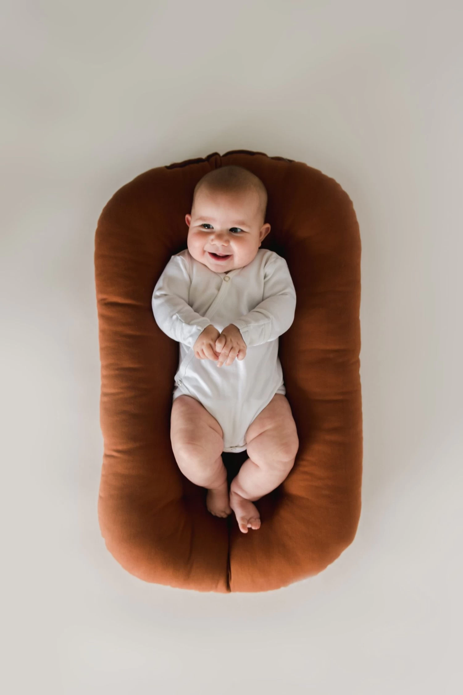 Snuggle Me Organic loungers are made with GOTS certified organic cotton fabrics, which currently holds the highest and most strict material safety standard in the world. They also insist that every component of your Snuggle Me is USA-made, yes, even the very cotton threads are grown here in the USA. This care and attention to detail matters deeply to us as mothers ourselves.