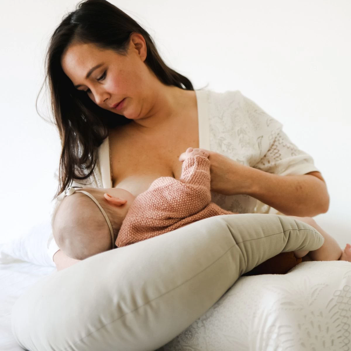 -GOTS certified organic cotton fabrics with polyester fiberfill create a machineable nursing aidan be used for nursing, bottle feeding, sitting up support, tummy time and more