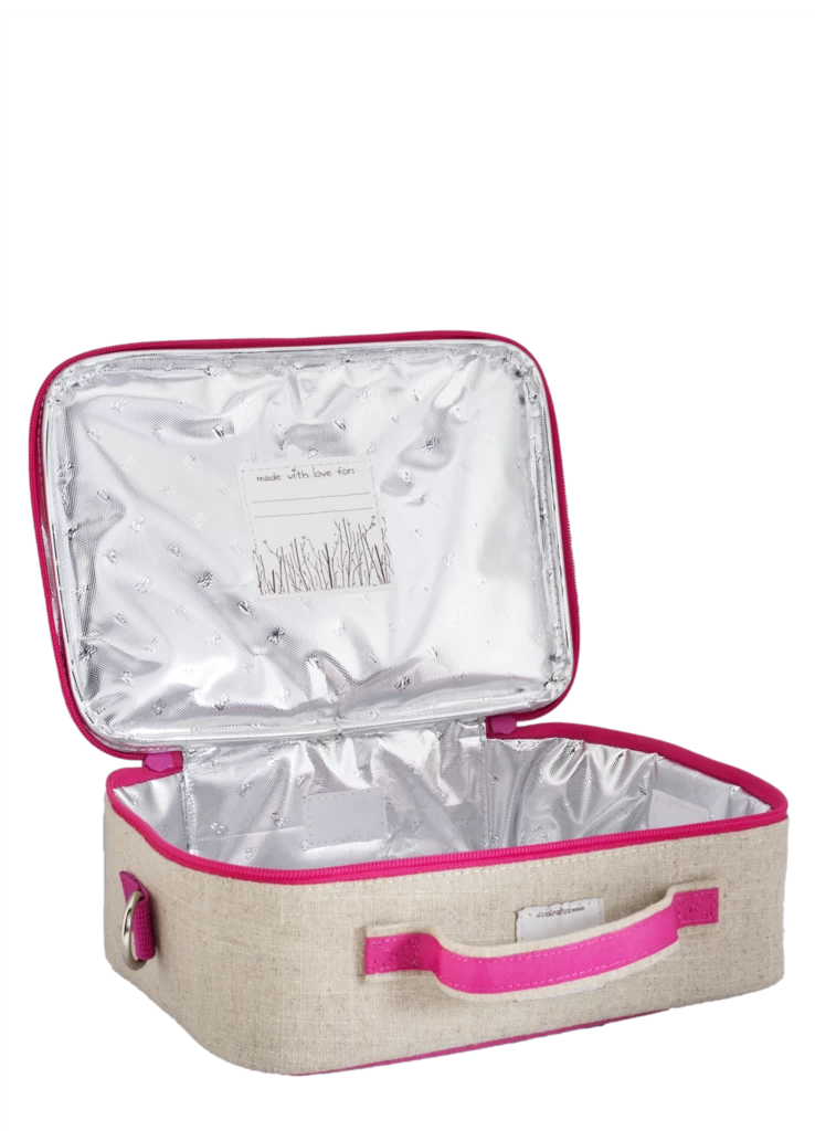 Lunch boxes made of durable raw (uncoated) linen. Clean, modern feel and retro-inspired designs paired with machine washability make these a new favourite! Comes with a leak proof insulated insert for easier cleaning and to help avoid staining from spills. Recommended for: saucy or wet lunches/snacks. Because this beauty can be machine washed!