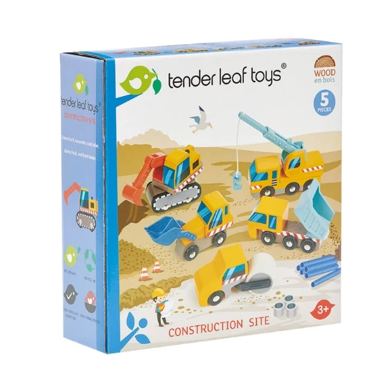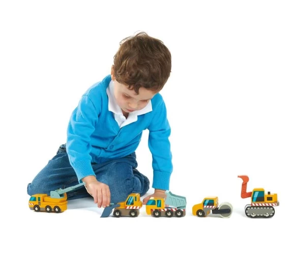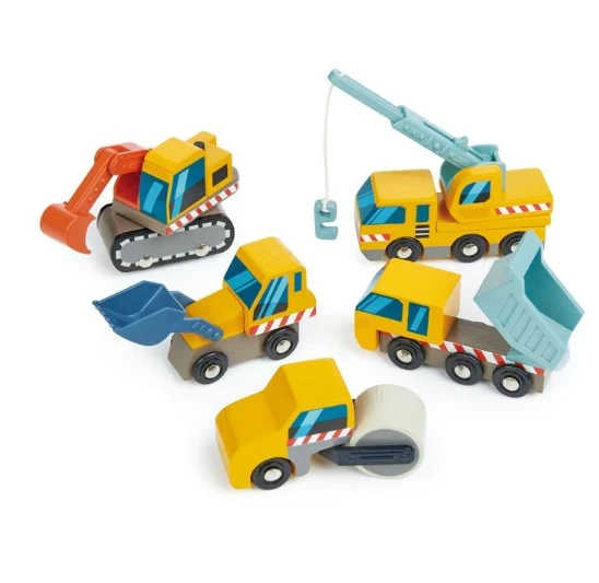 - 5 PCs – The Construction Site includes 1 Crane truck, 1 Excavator, 1 Road Roller, 1 Dump Truck, and 1 Front Loader.